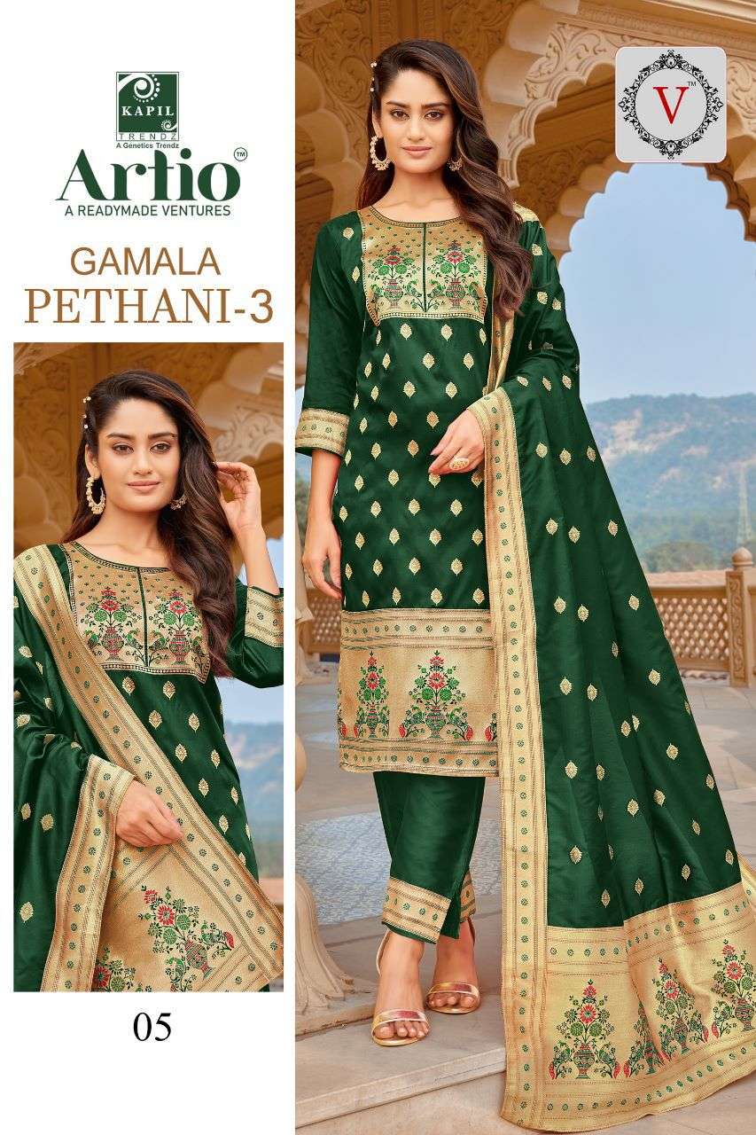 veda kapil trendz petheni chaand kor full stitch jacquard chanderi combo 3pcs dress