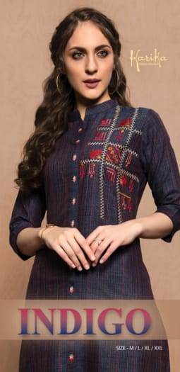 Karika Fashion Launch Indigo Cotton With Embroidery Casual Wear Kurti