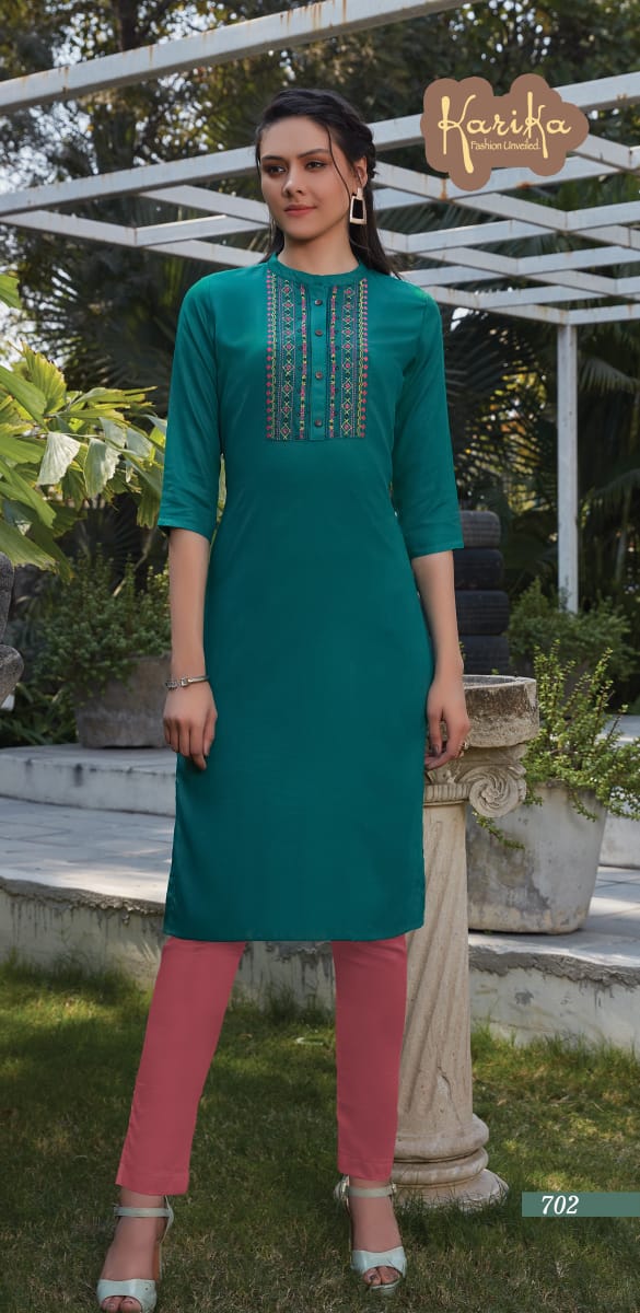 Pearl By Karika Fashion Rayon With Embroidery Plane Kurti Wholesaler