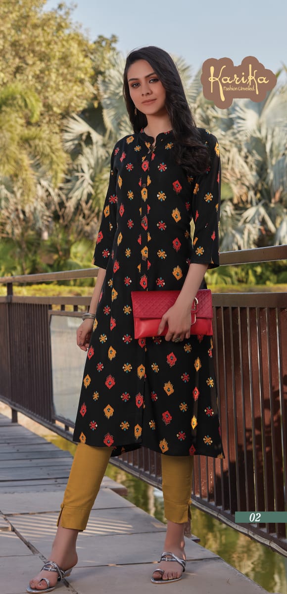 Karika Launch Black Beauty Rayon Exclusive Kurti Catalogs Supplier