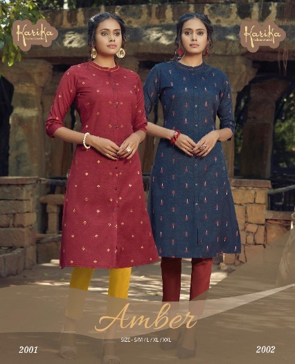 Karika Amber Weaving Cotton Formal Wear Fancy Kurtis