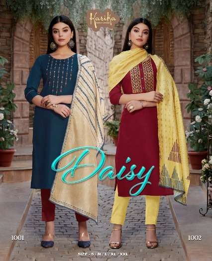 karika present daisy cotton kurti with silk dupatta collection