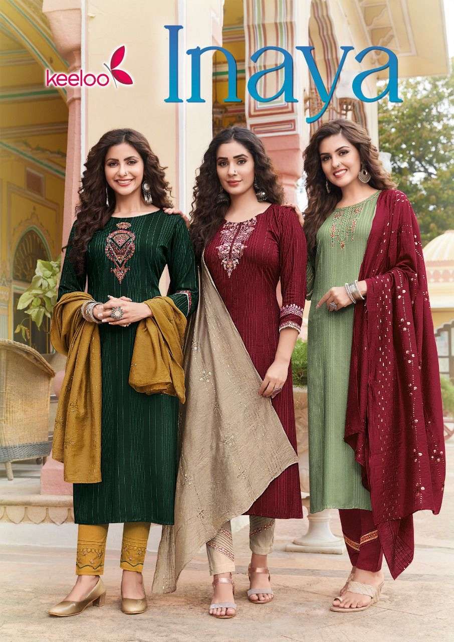 keeloo inaya vol 1 readymade rayon kurti with pant & dupatta set