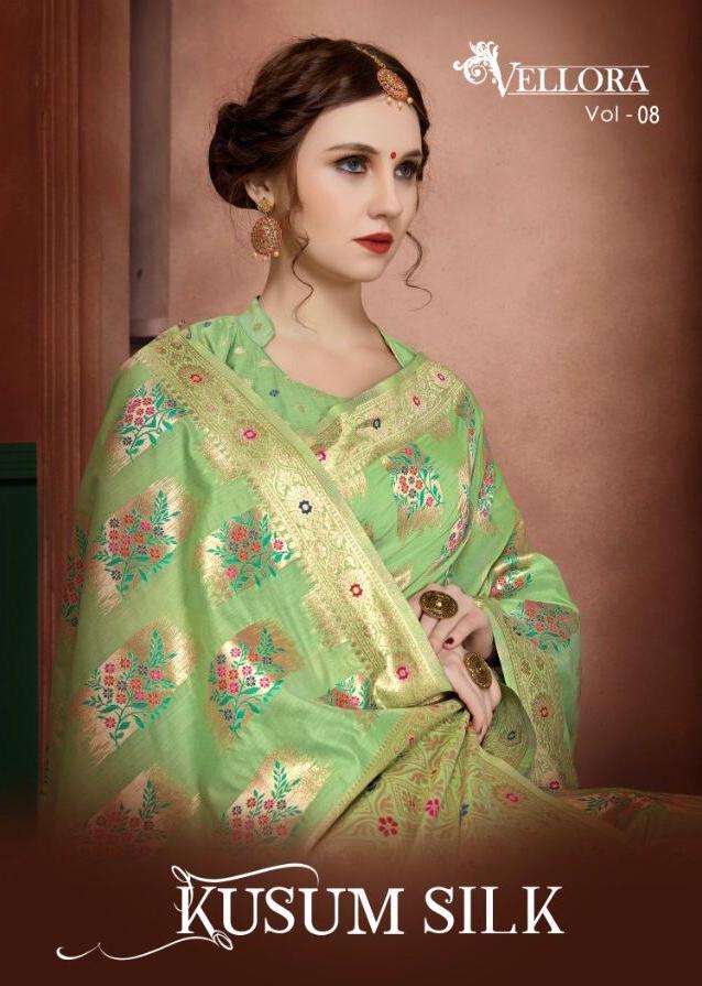 Kesari Exports Vellora Vol 3 Kumkum Silk Banarsi Cotton Silk Saree Online Seller