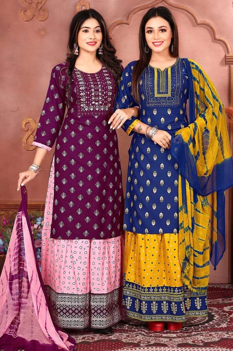 kinti naziya vol 4 fancy readymade sharara style top bottom dupatta