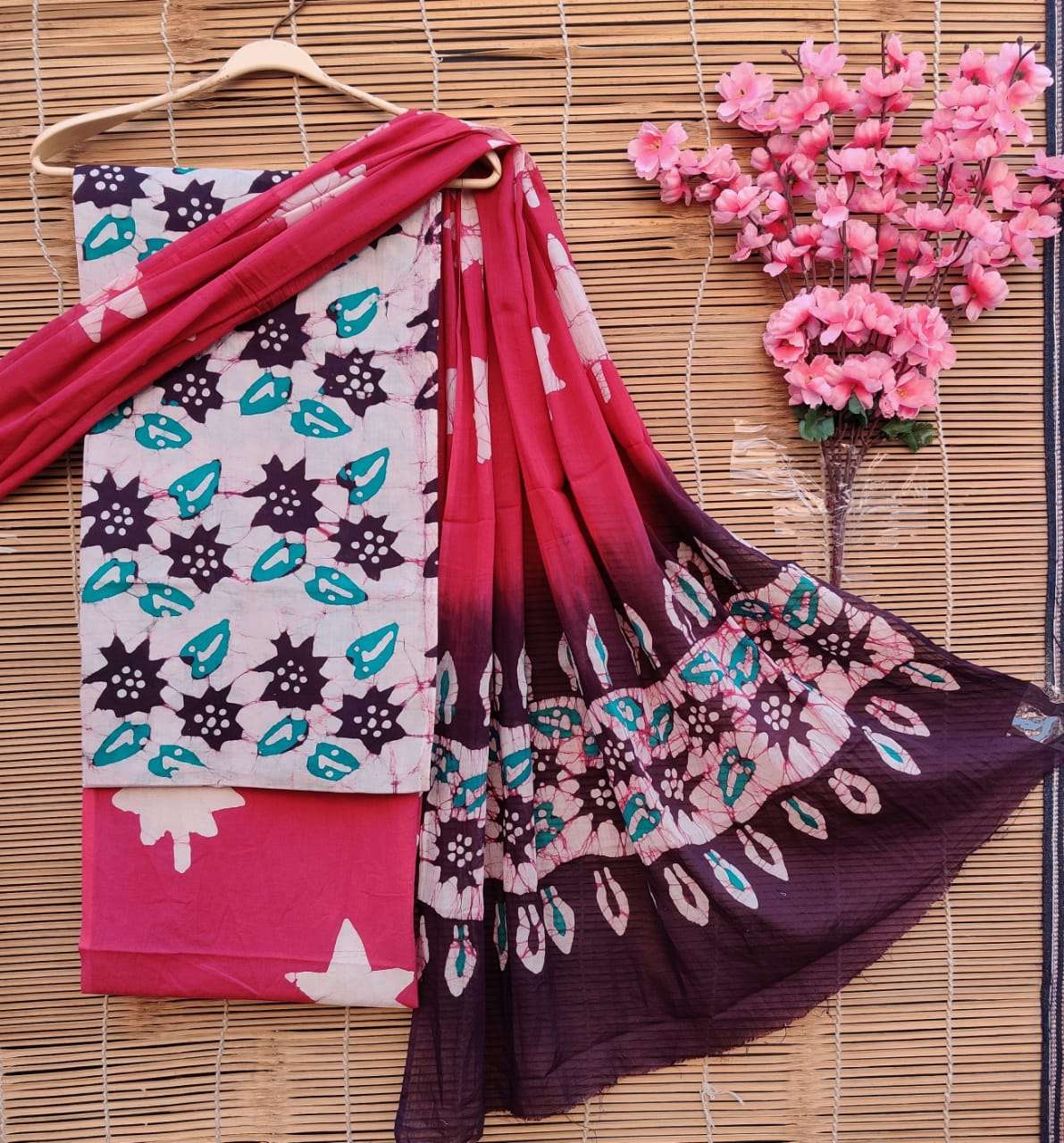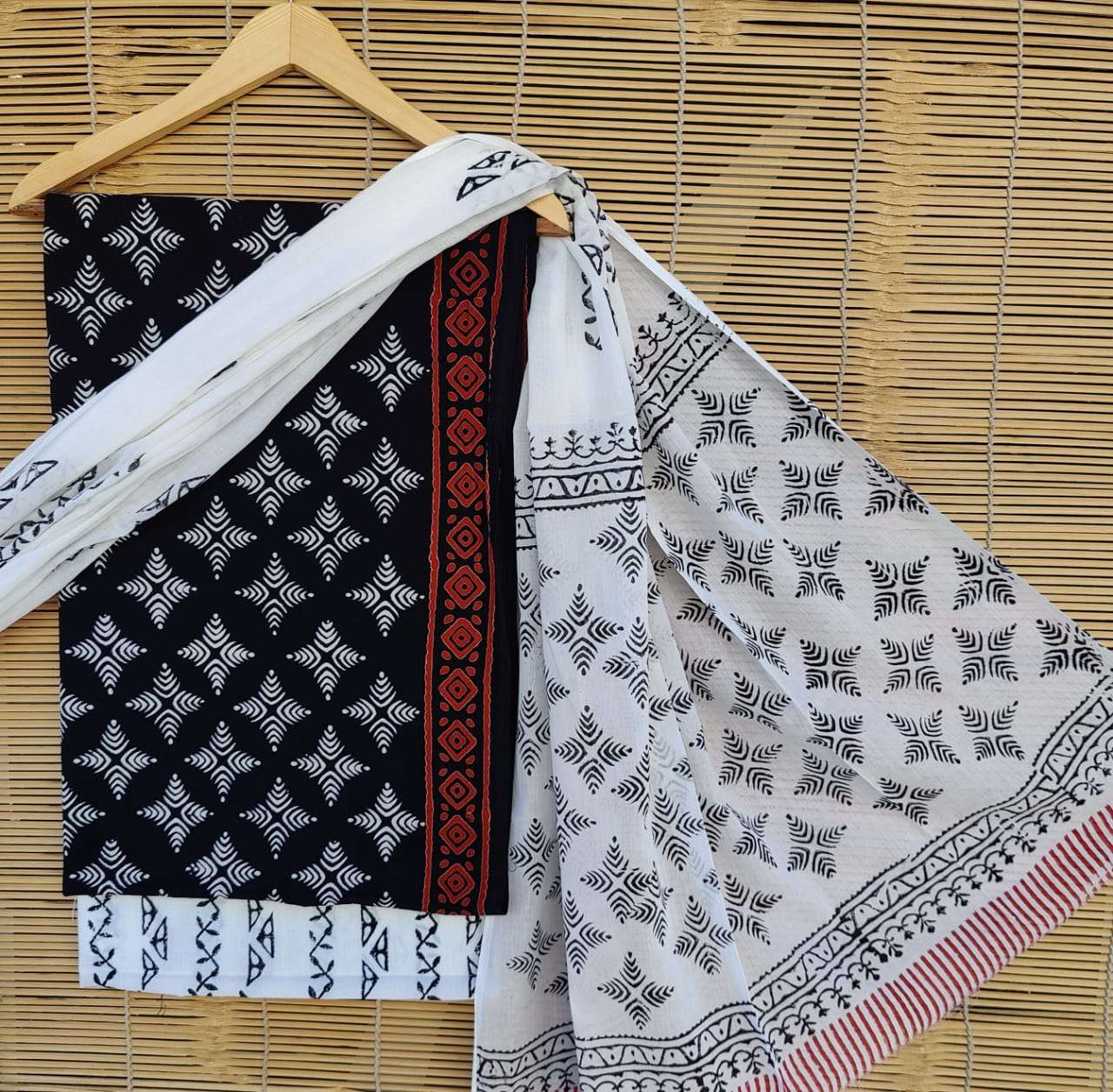 exclusive new hand block printed cotton suits with cotton dupatta