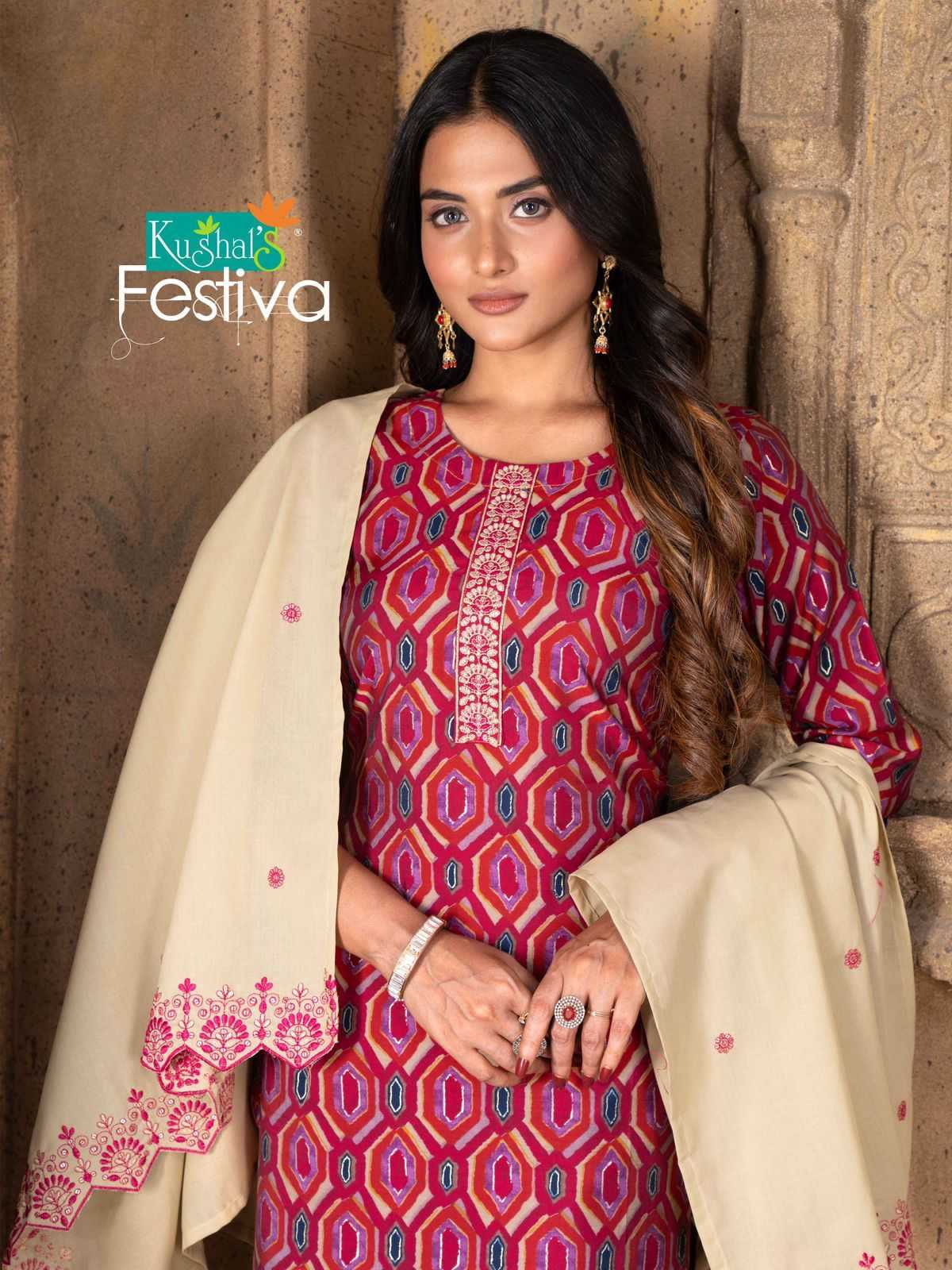 kushal present festiva fancy straight kurti with pant and chanderi dupatta catalog