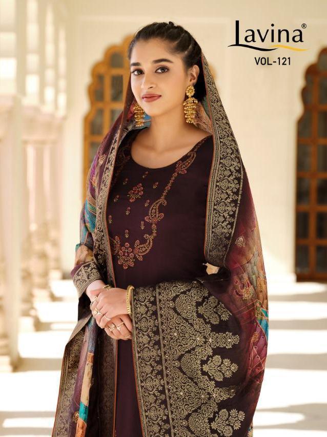 Lavina Vol 121 By Lavina Pure Silk Embroidery Charming Look Designer Suits Wholesaler