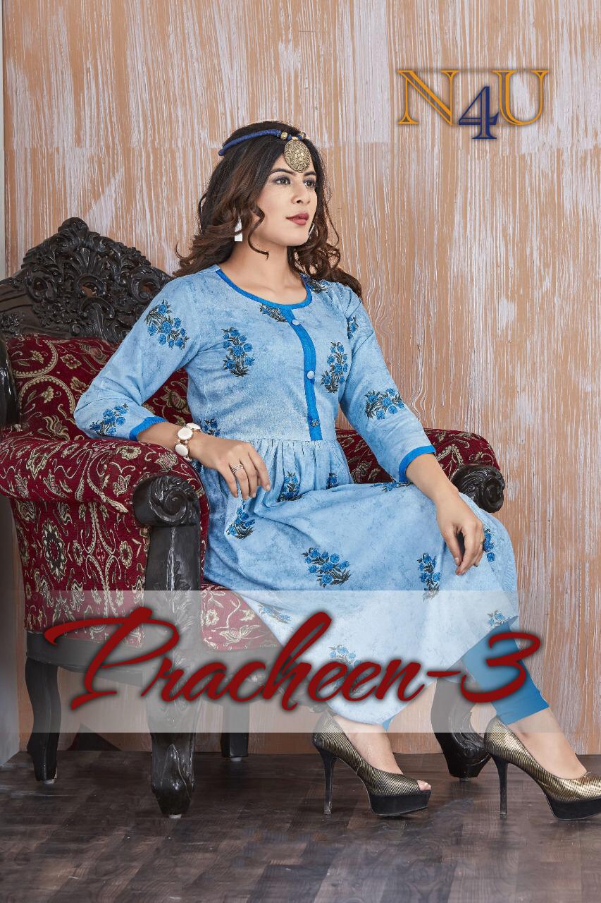 N4u Pracheen Vol 3 Rayon Viscose Printed Designer Kurti Designs