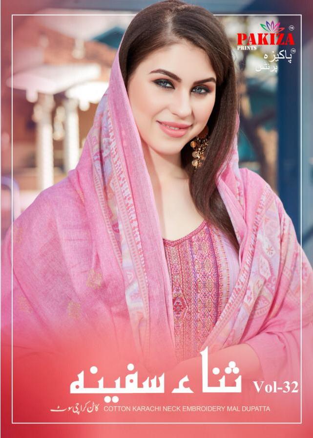 Pakiza Prints Vol 32 Cotton Satin Kashmiri Embroidery Dress Materials