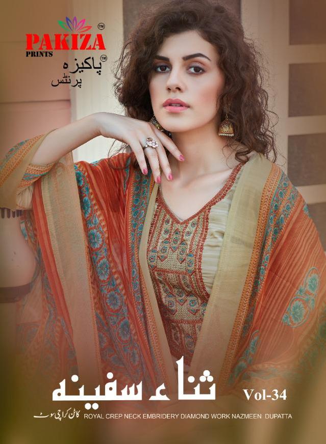 Pakiza Print Vol 34 French Crape Dress Materials Online Supplier