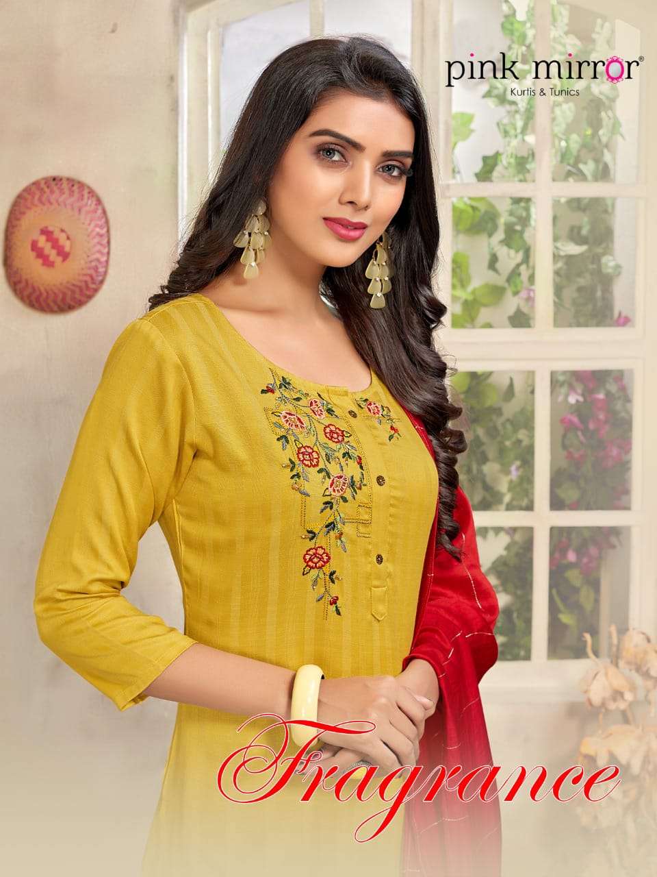pink mirror fragrance viscose embroidery full stitch top pant with dupatta