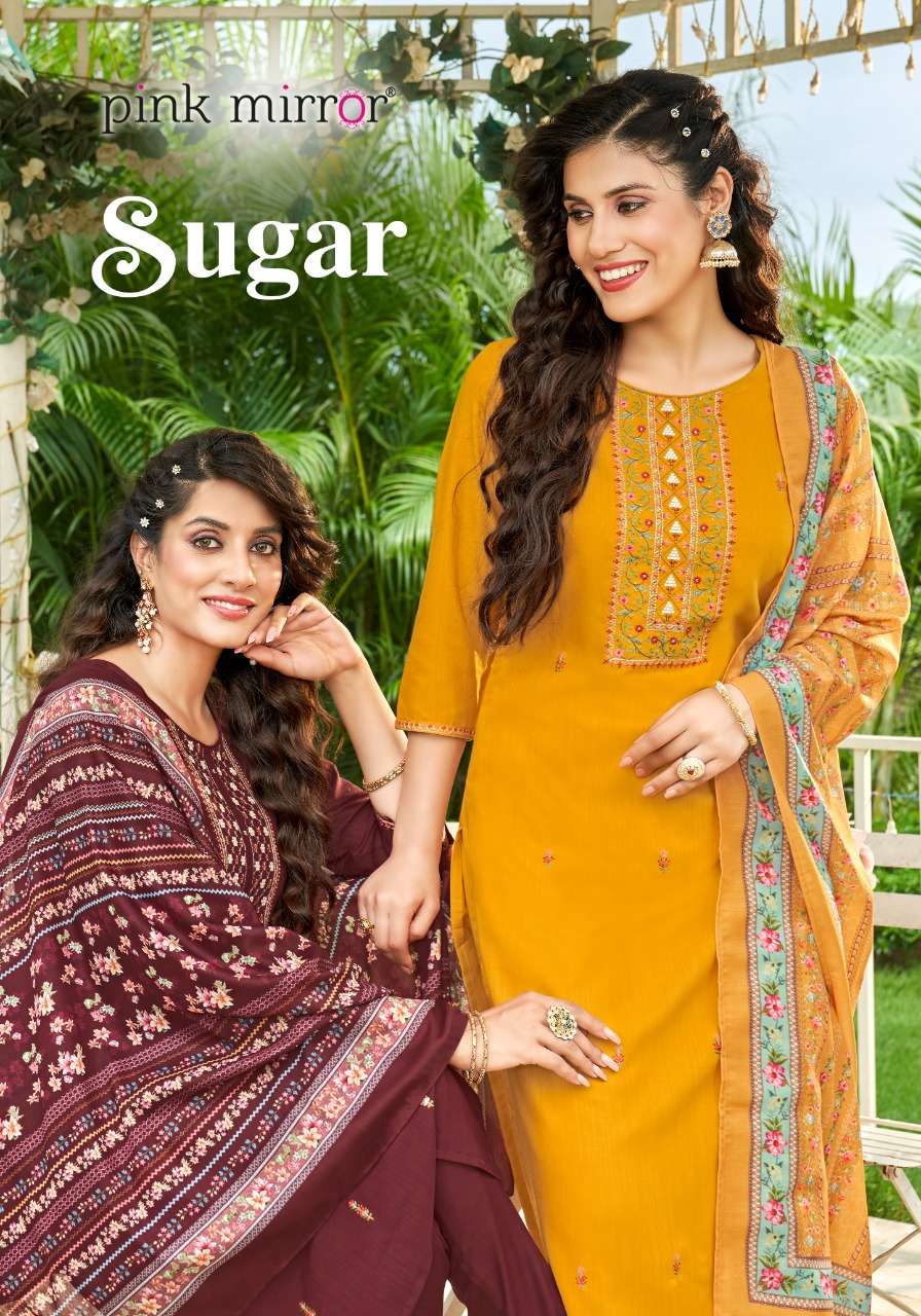 pink mirror sugar 3psc readymade top bottom and dupatta
