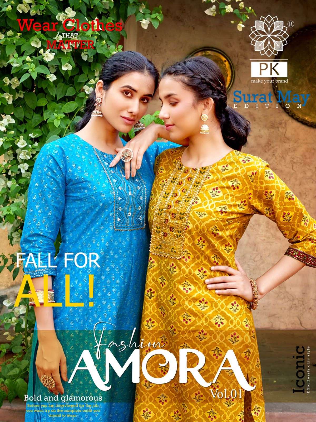 pk present fashion amora vol 1 fancy cotton print kurti with pant catalog