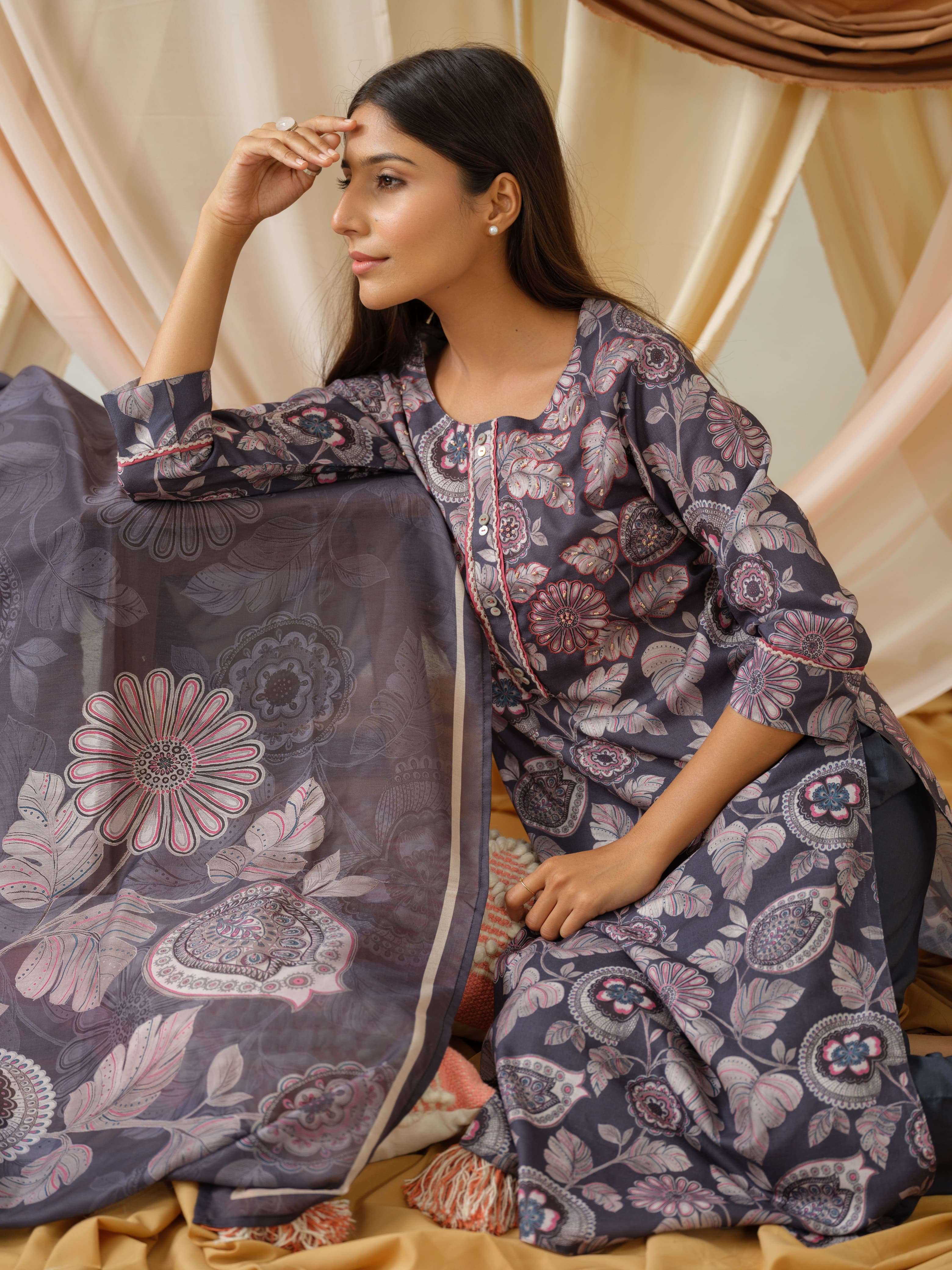 psyna lotus readymade classy look floral print kurti pant dupatta