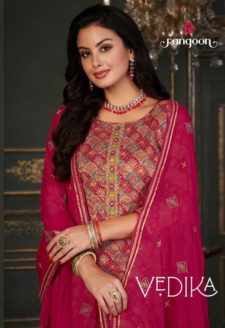 rangoon maya viscose jacquard fully stitch stylish suit for womens