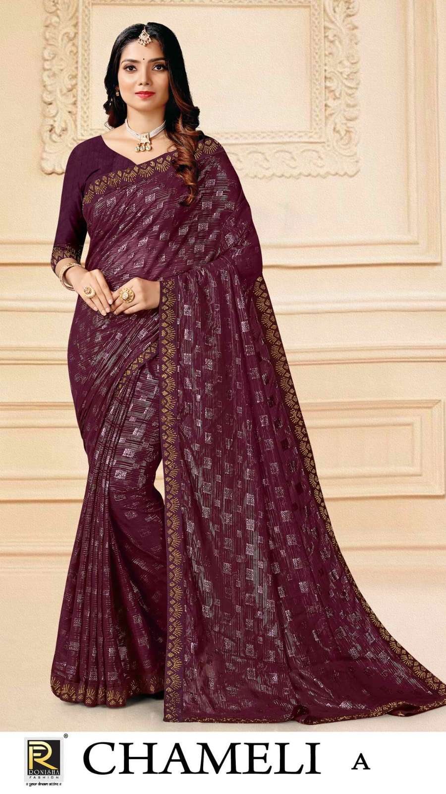 MALIKA BY RANJNA SAREE SIMMER FABRICS JARKHAN DIAMOND WORK FANCY SUPER HIT COLLECTION SAREES