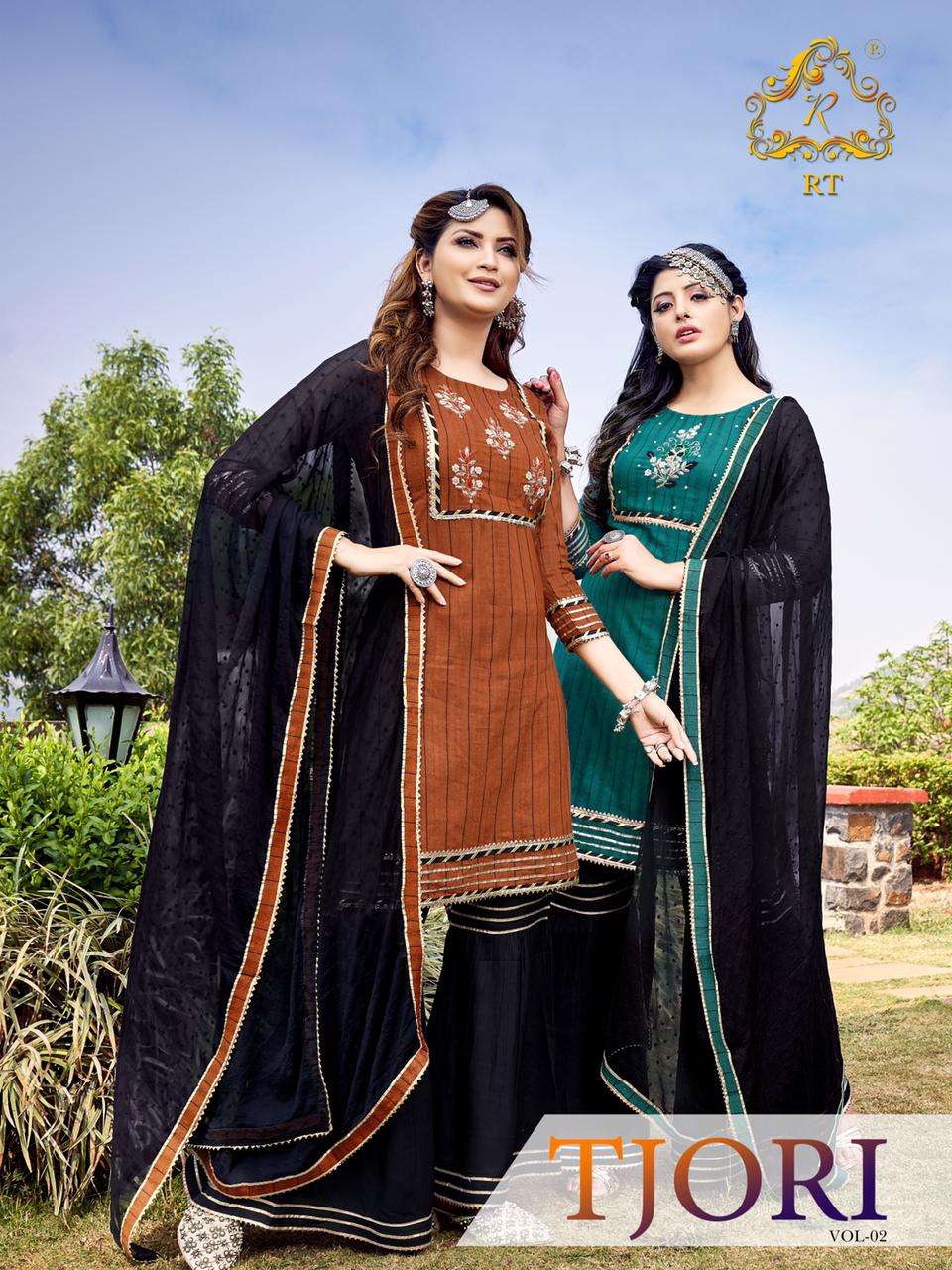 Tjori Vol 2 By Rijiya Trends 3 Piece Kurti Sharara And Dupatta Wholesaler