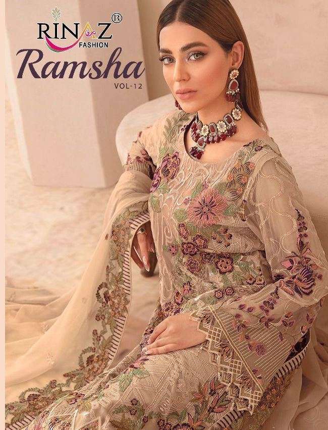 rinaz fashion ramsha vol 12 fancy pakistani dress materials with heavy embroidery & diamond work