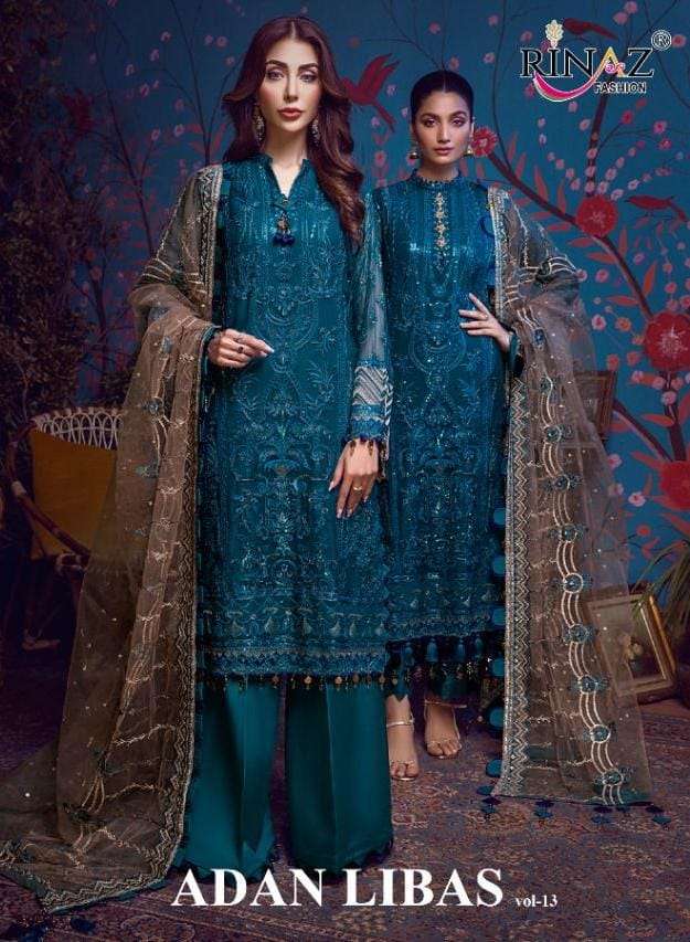 adan libas vol 13 by rinaz georgette pakistani work party wear suits