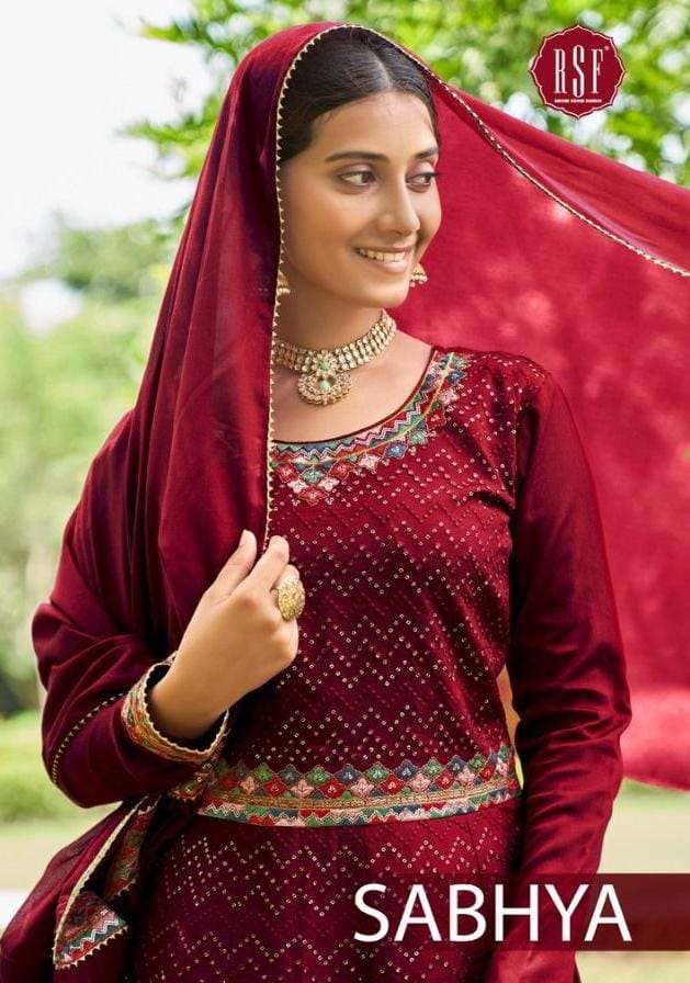 rsf sabhya chinon silk readymade party wear peplum sharara suits