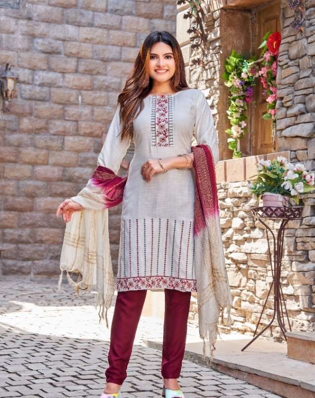 rung gungun readymade embroidery work alia cut kurti pant dupatta