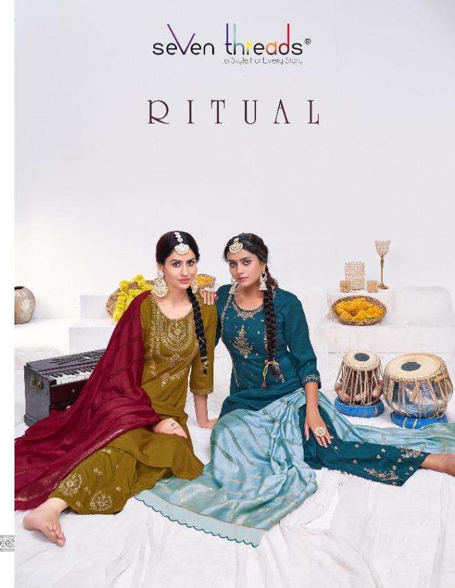 seven threads ritual viscose silk full stitch top bottom with dupatta