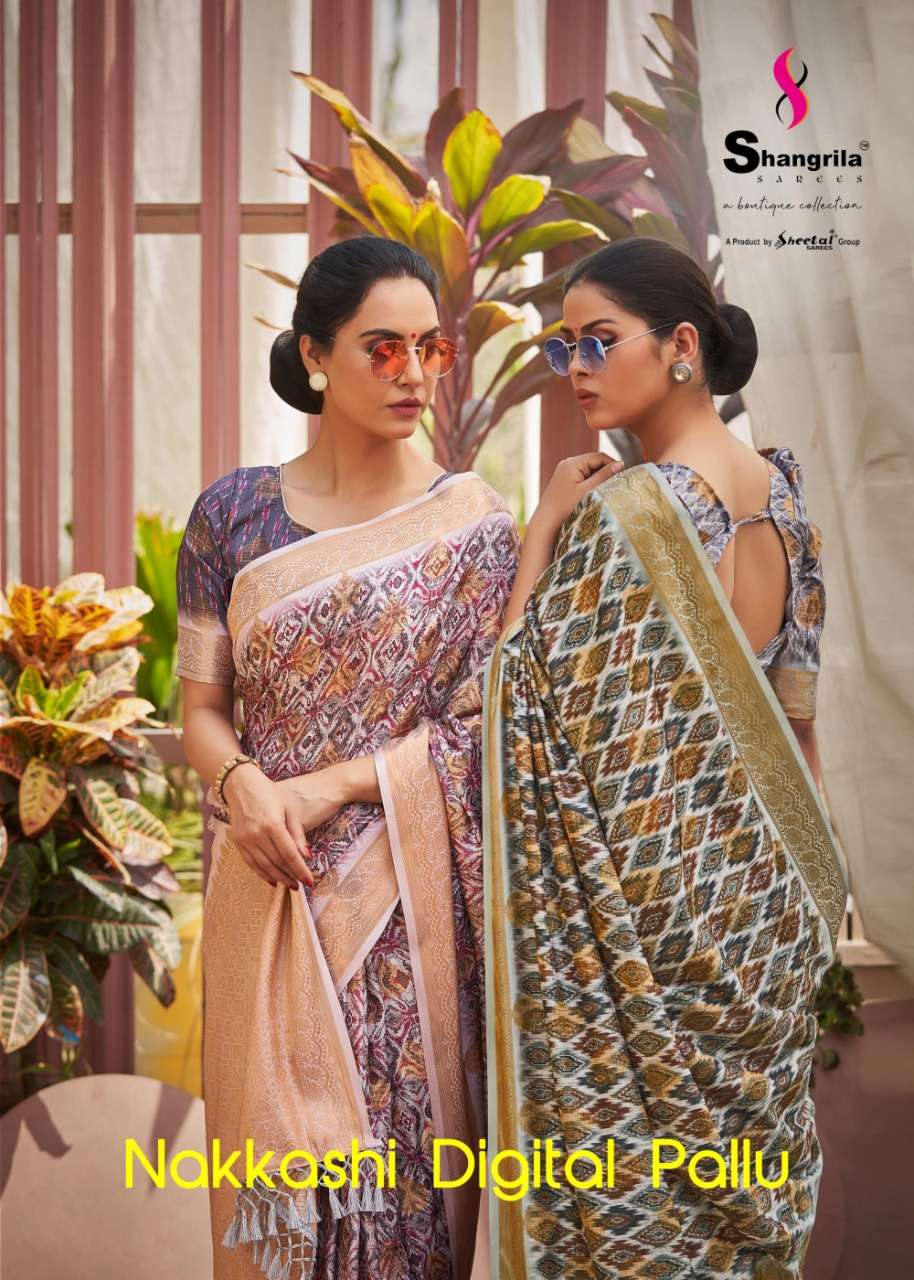 Shangrila nakkashi digital pallu fancy sarees collection