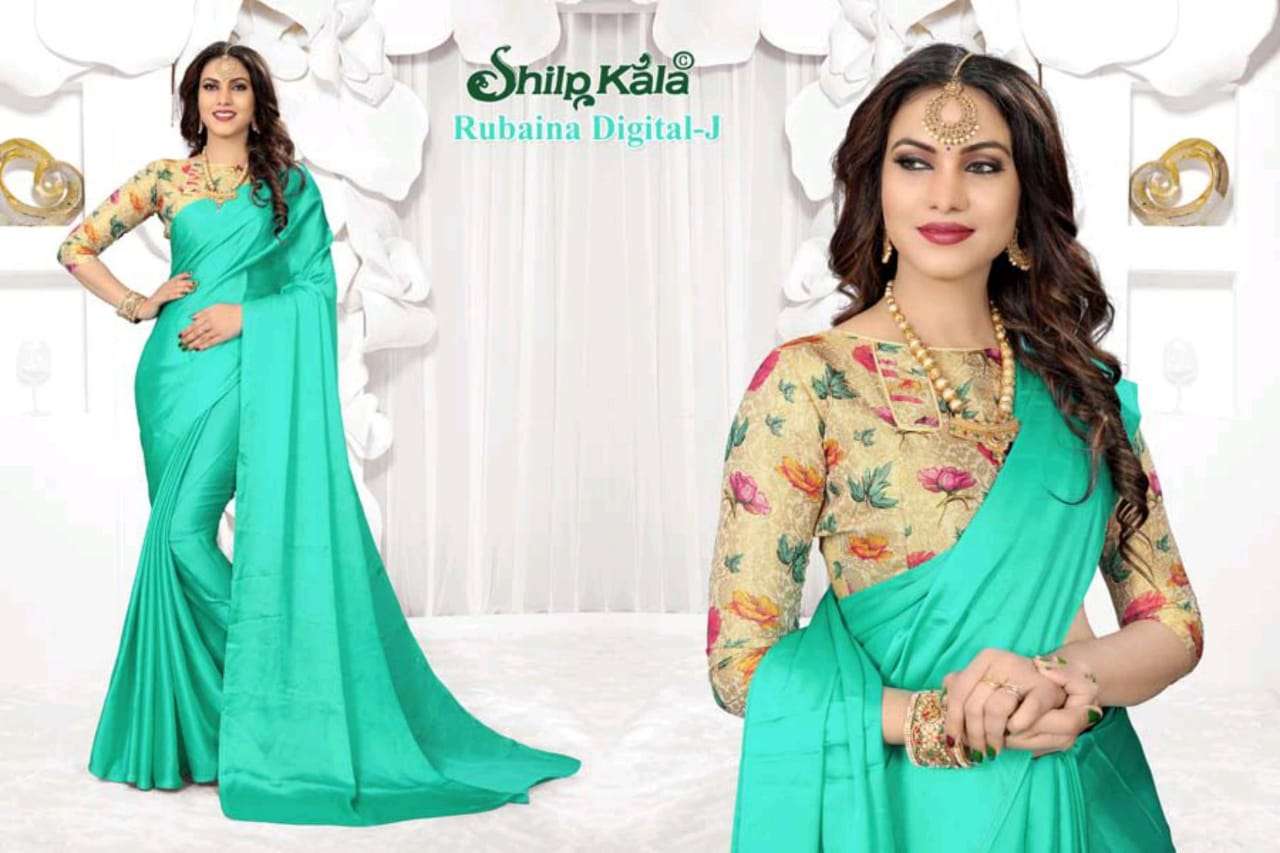 shilp kala present rubaina digital satin plain saree with fancy blouse concept