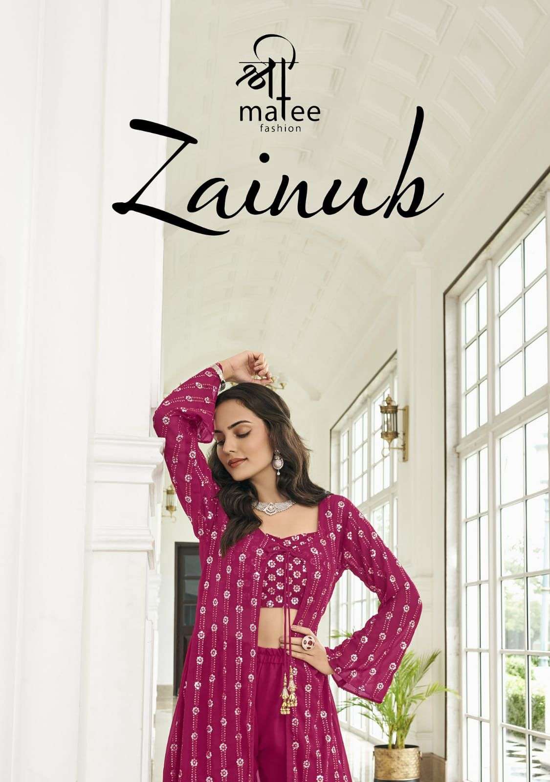shreematee fashion present nuqat wedding season readymade plazzo with blouse and designer shrug catalog