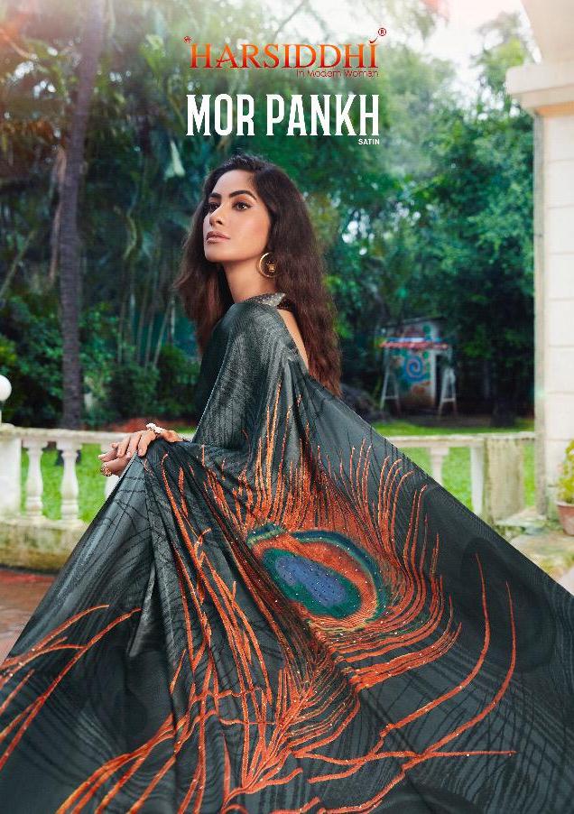 Harsiddhi Designer Mor Pankh Exclusive Satin Silk Printed Saree Wholesaler Exporter
