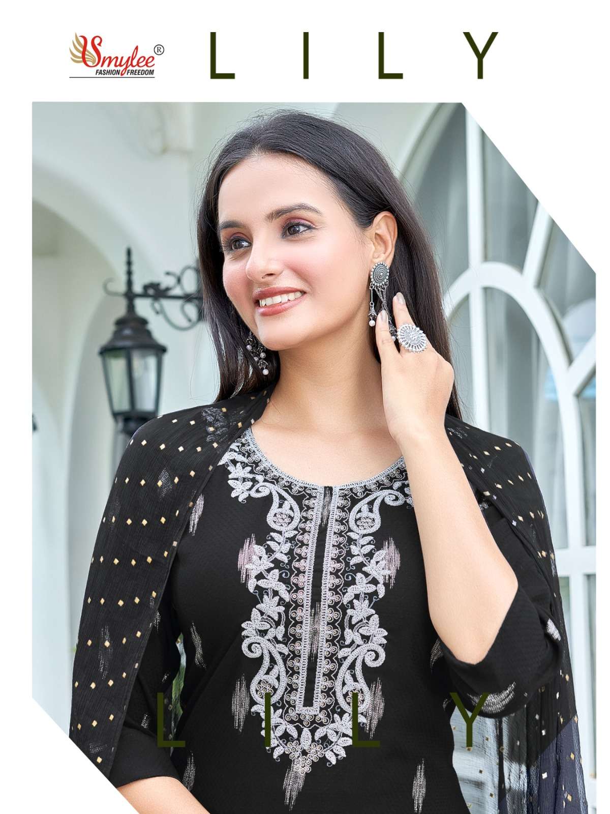 smylee present lily fancy casual straight kurti with pant and dupatta catalog