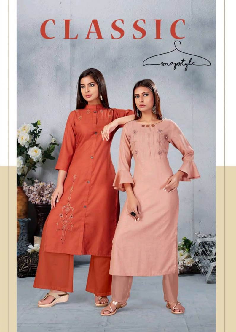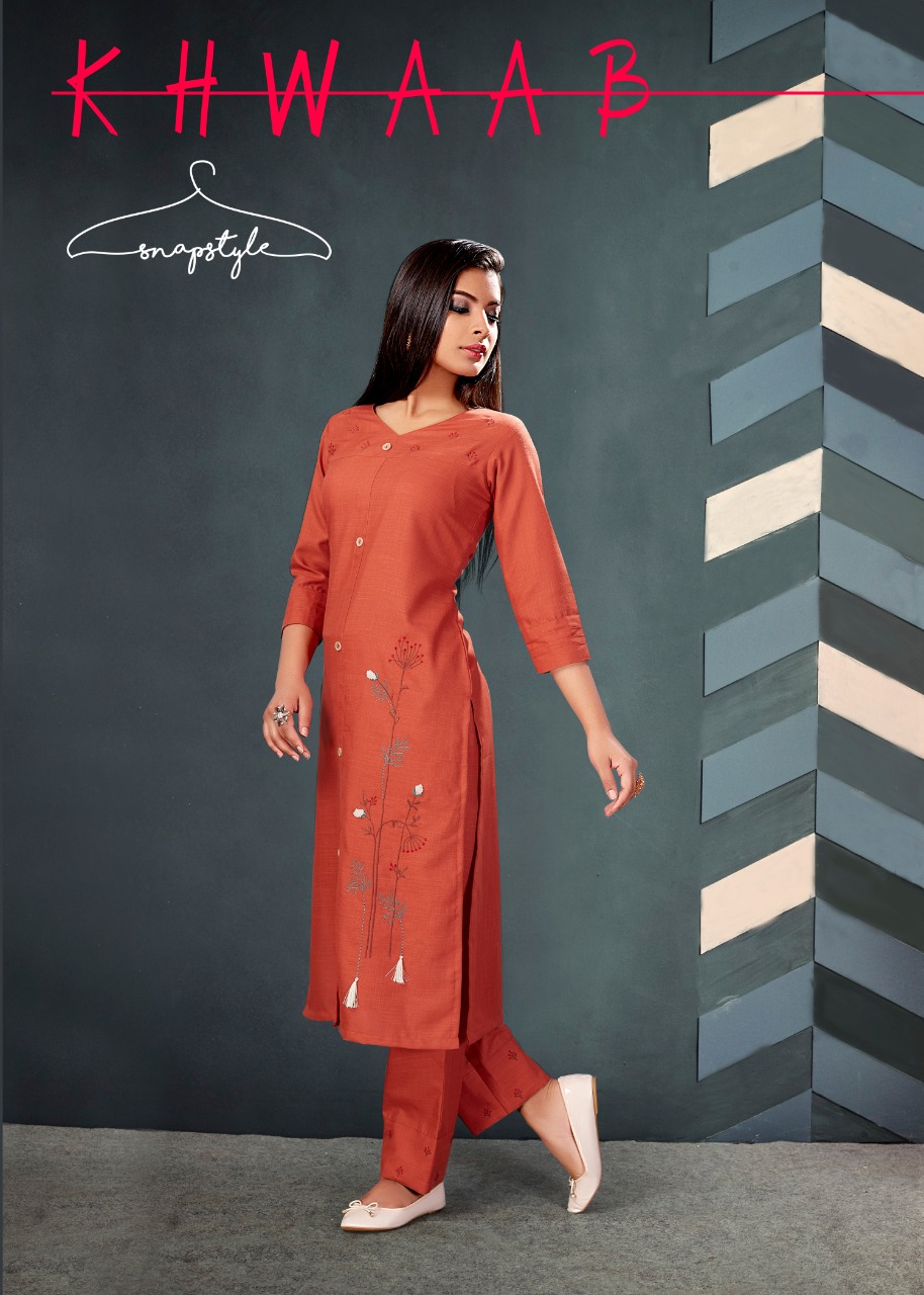 Snapstyle Khwab Vol 2 Straight Classy Look Kurti With Embroidery Pants Set
