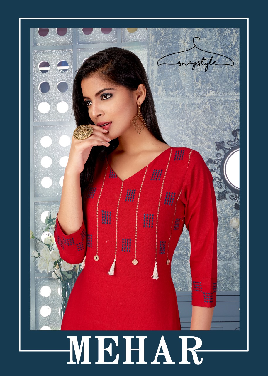 Snapstyle Present Mehar Cotton Flex Simple Sobar Kurti Collection In Surat