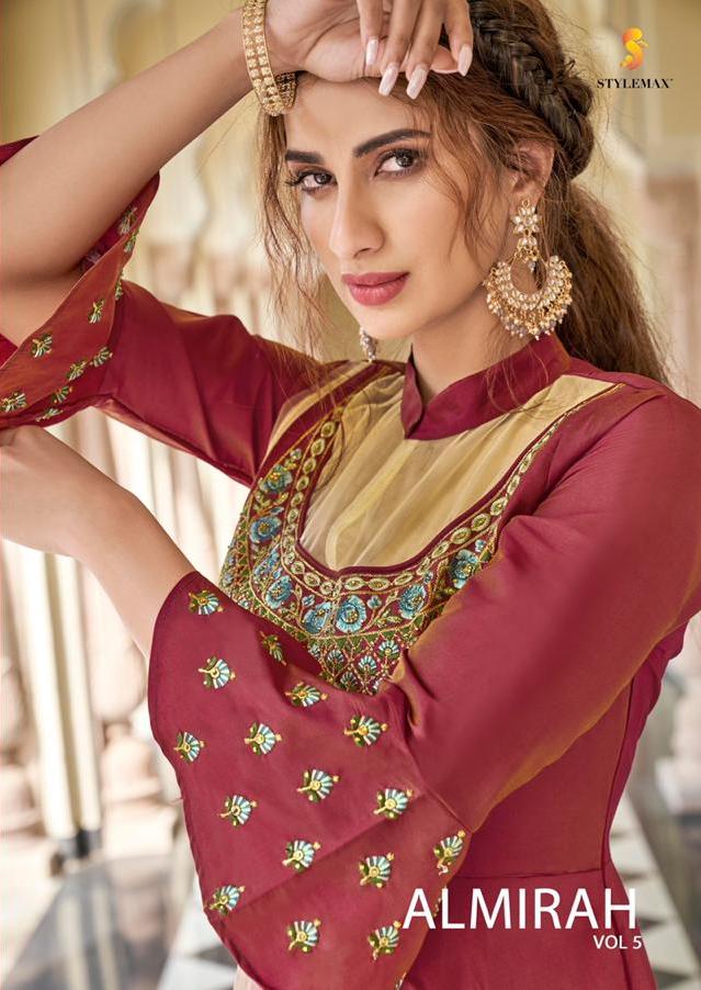 Almirah Vol 5 By Stylemax Soft Silk Embroidery Long Party Wear Gown Collection