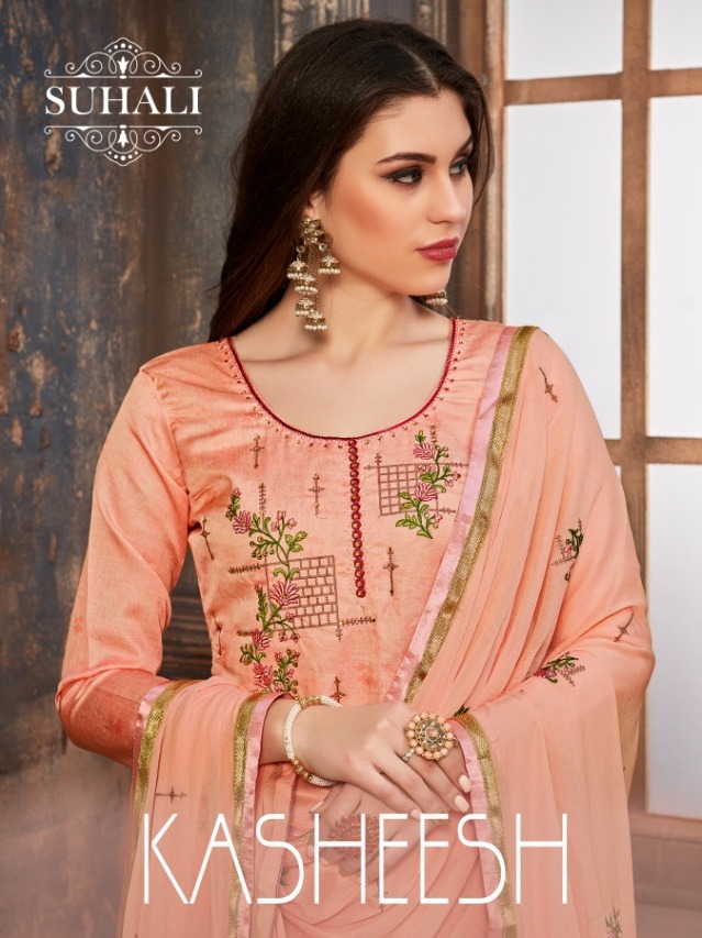 Suhali Present Kasheesh Silk Cotton Embroidery Suits Supplier