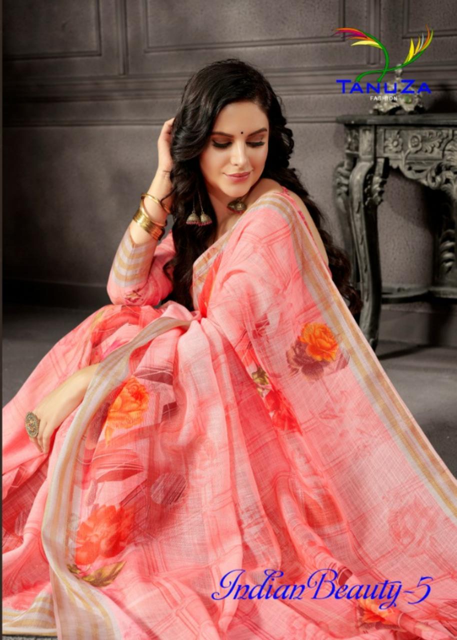 Tanuja Fashion Indian Beauty Vol 5 Linen Digital Printed Designer Saree