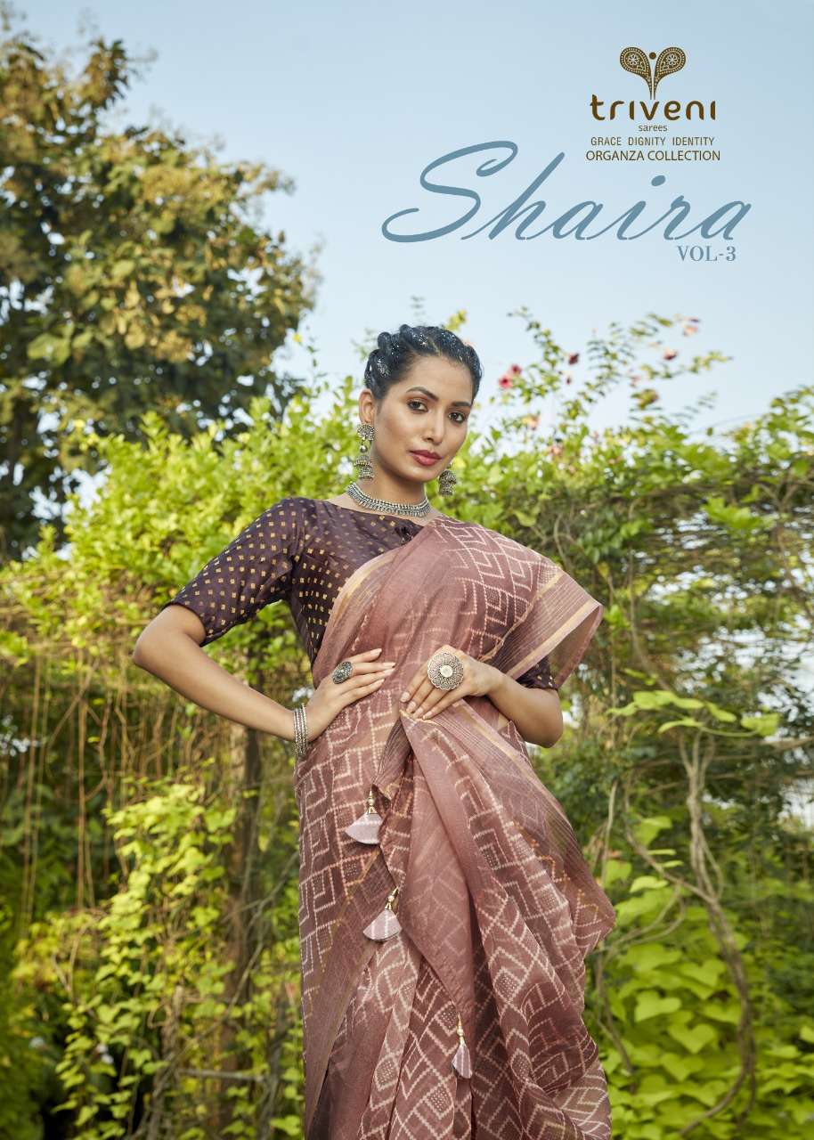 triveni sarees surat shaira vol 3 organza saris wholesale supplier in surat
