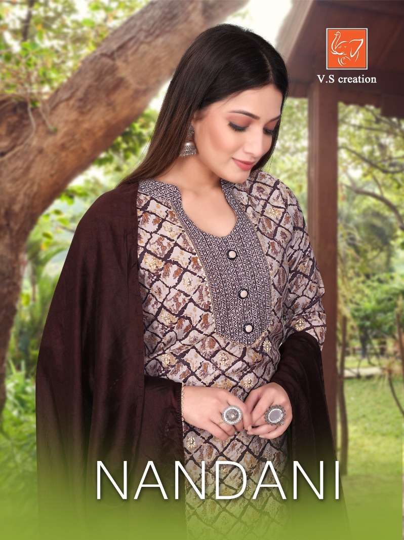 nandani by vs creation readymade viscose chanderi straight kurti with pant and dupatta