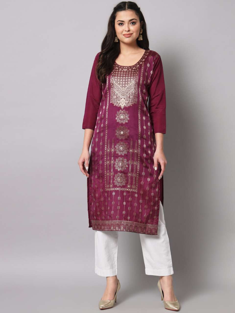 Laxmi Straight Cotton Silk Kurta With Zari Work