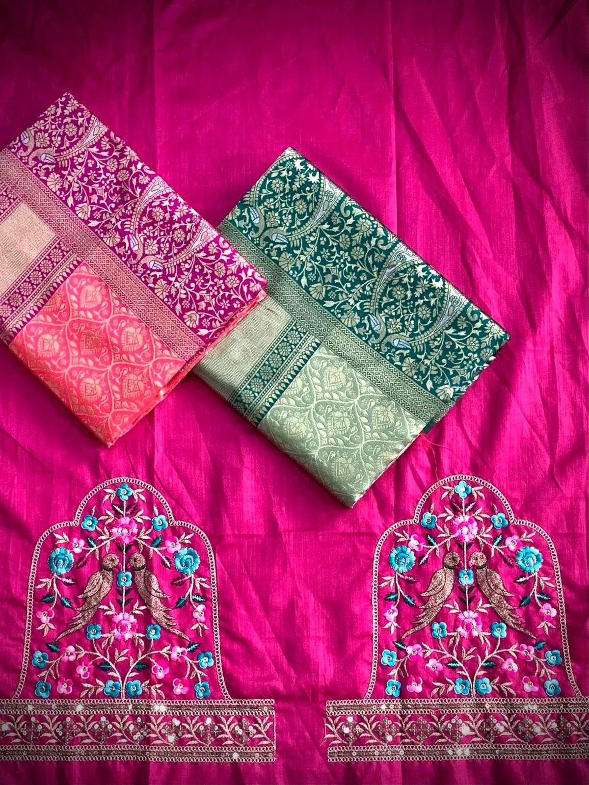 Roopam 2 Banarasi Weaving Silk Saree Blouse Satin Banglory with Heavy Embroidery work