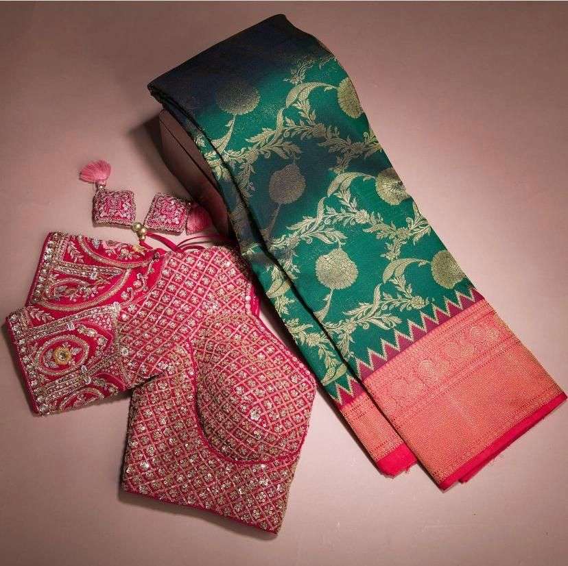 Roopam 8 Banarasi Weaving Silk Saree Blouse Satin Banglory with Heavy Embroidery work