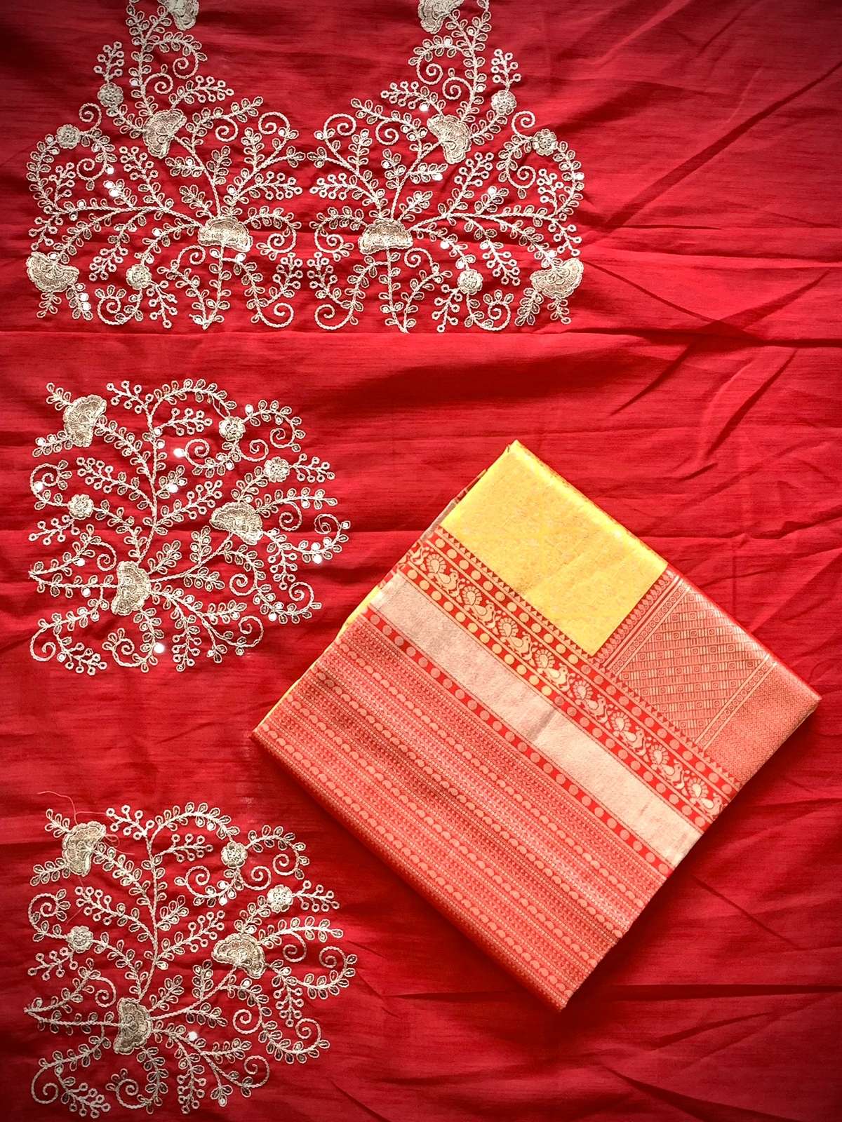 Roopam 4 Banarasi Weaving Silk Saree Blouse Satin Banglory with Heavy Embroidery work