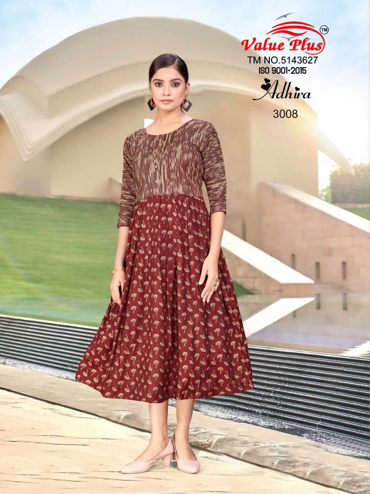 value plus present adhira vol 10 fullstitch flair rayon kurti combo set