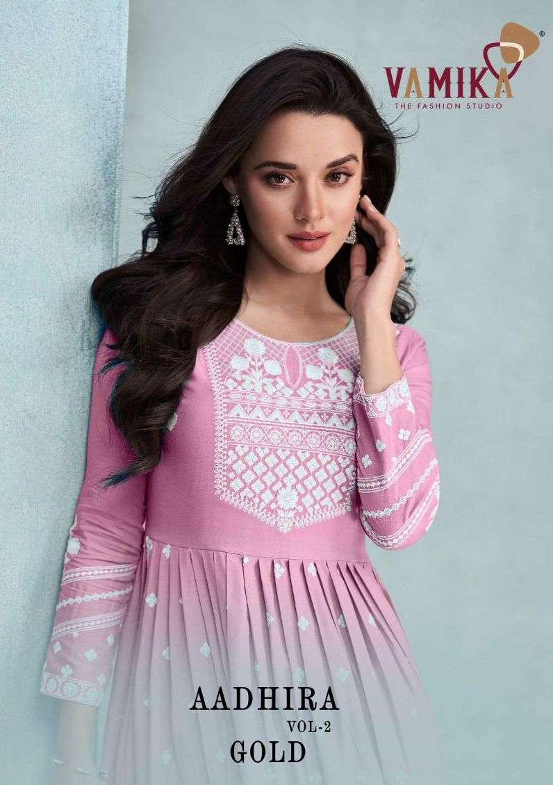 vamika lakhnavi vol 7 gold fullstitch designer kurti plazzo with naznin dupatta