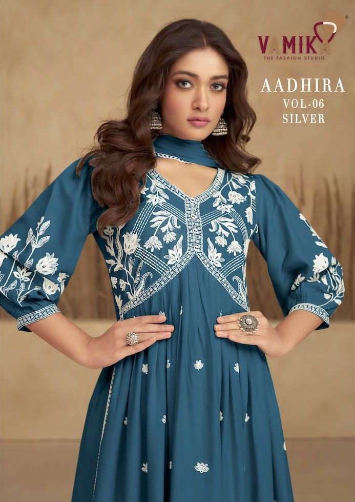 vamika lakhnavi vol 6 silver designer fullstitch plazo kurti dupatta traditonal wear collection