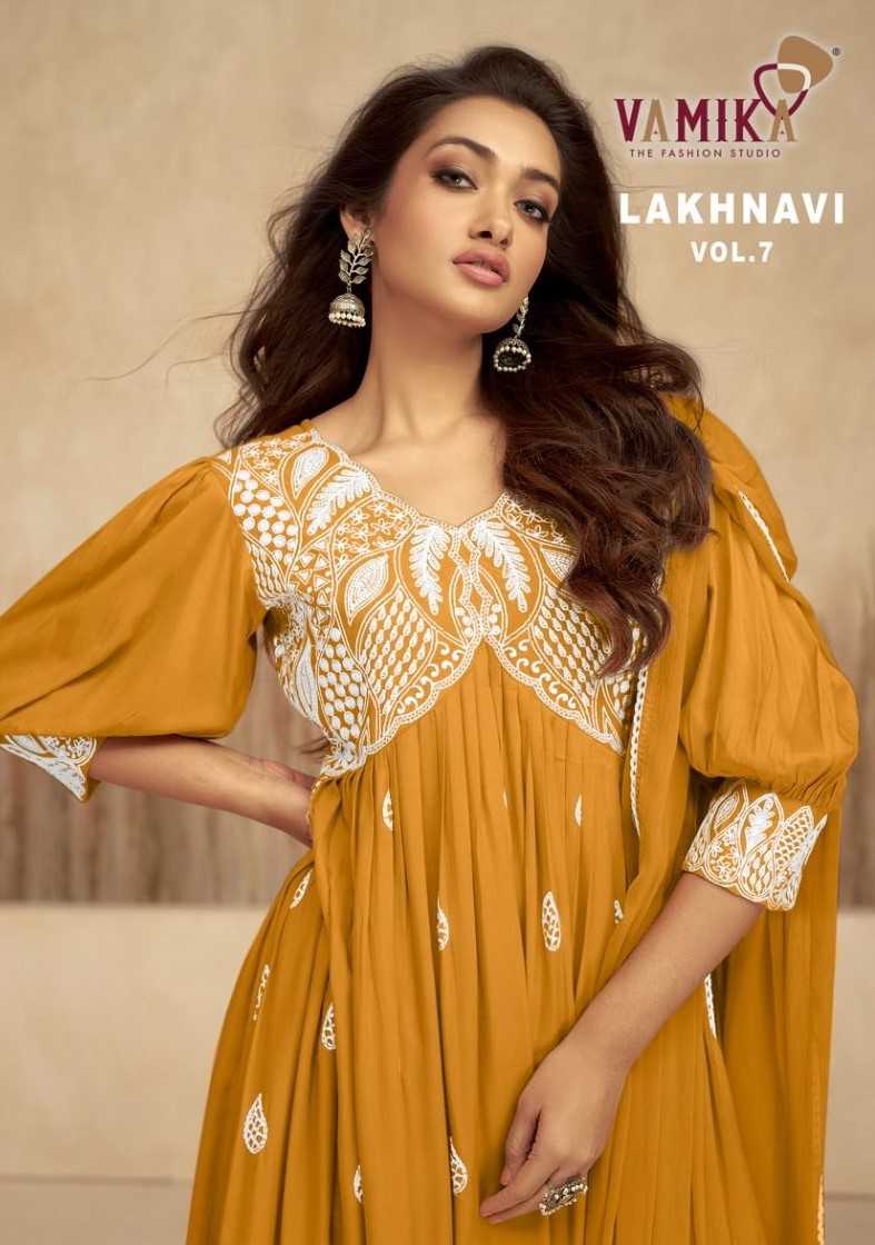 lakhnawi vol 4 hit series by vamika rayon fully stitch plazzo style dress