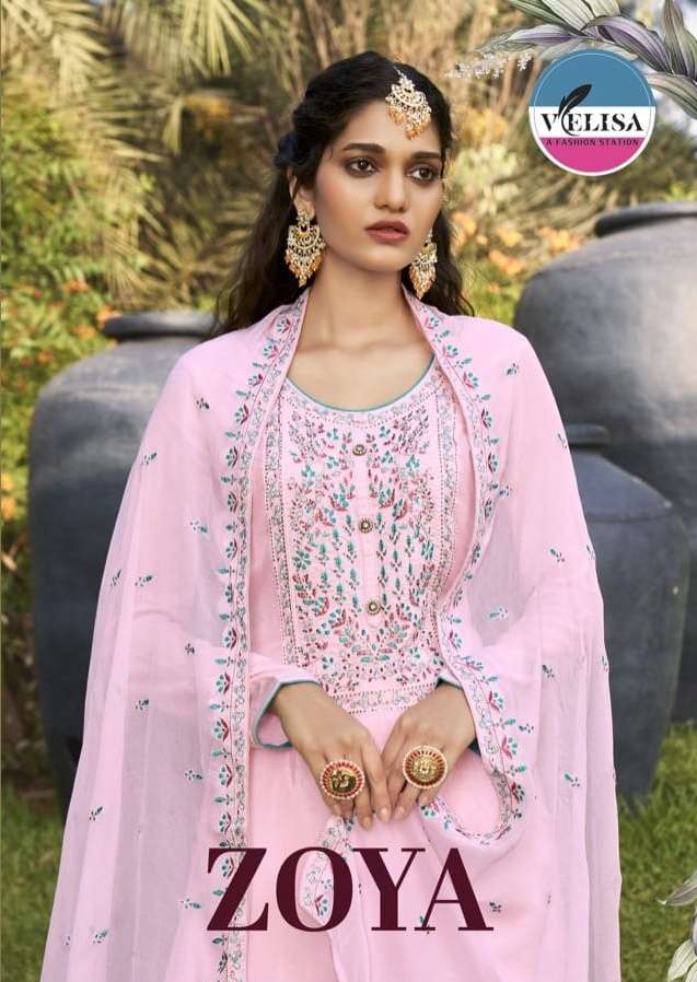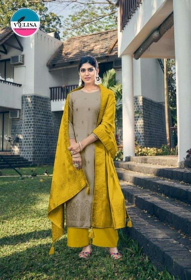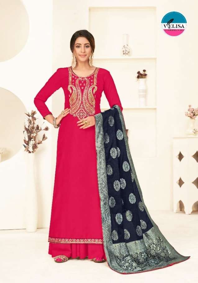 Velisa Launch Eliza Jam Silk Embroidery Work Long Style Salwar Suits Supplier