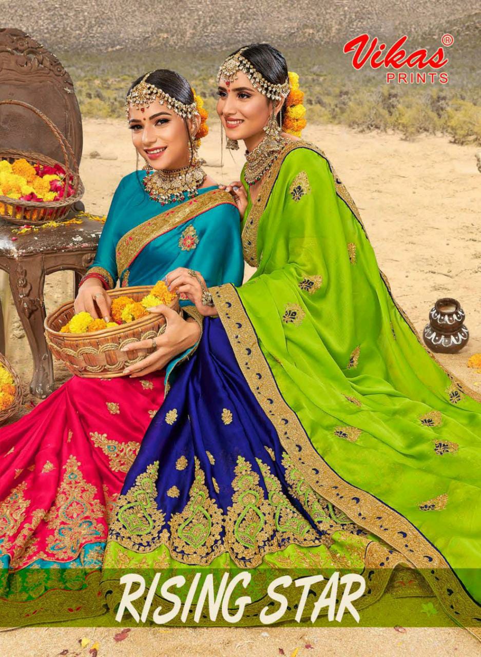 Rising Star By Vikas Prints Satin Chiffon Functional Wear Designer Rich Look Saree Trader