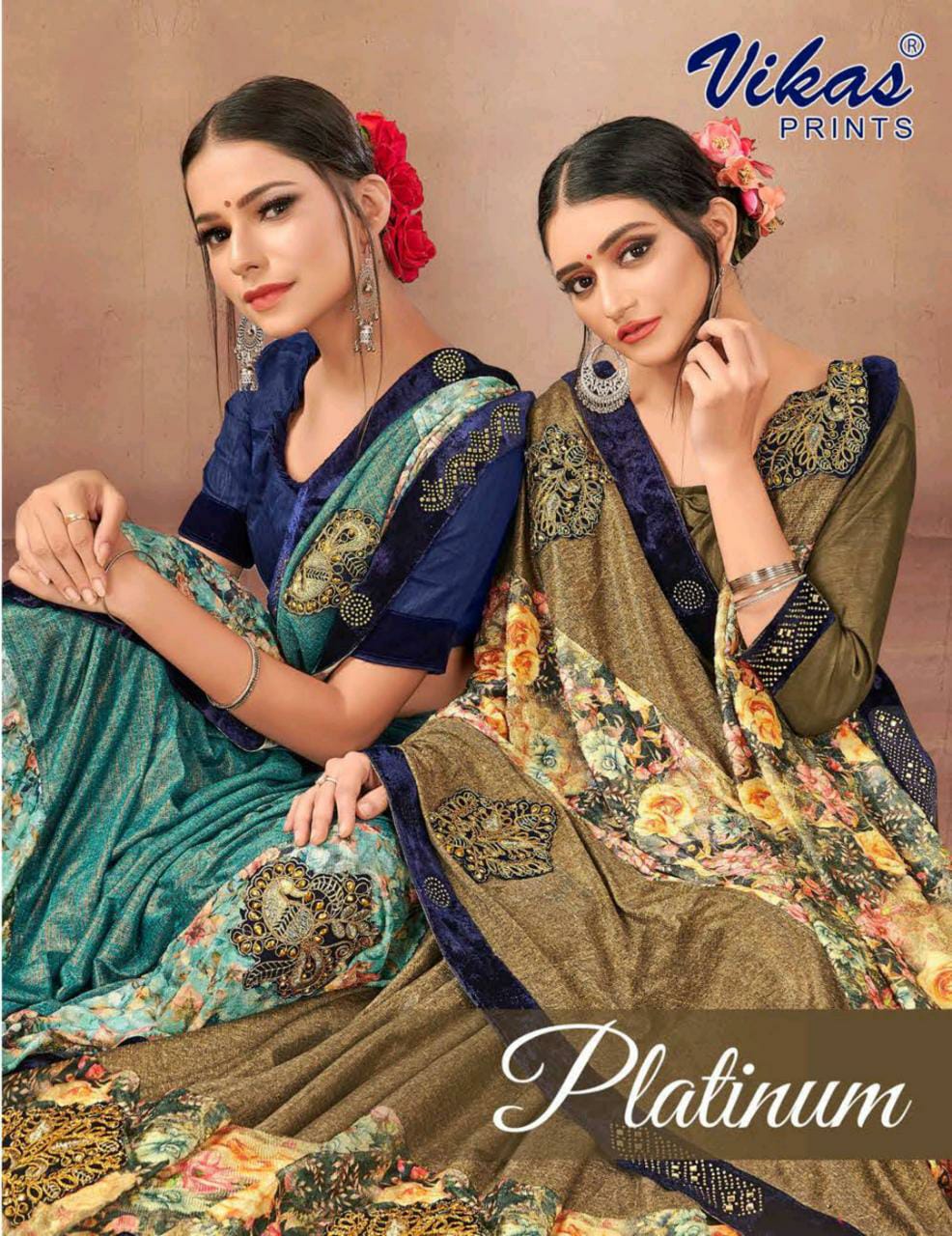 Vikas Prints Launch Platinum New Design Print Digital Knitting With Super Line Saree